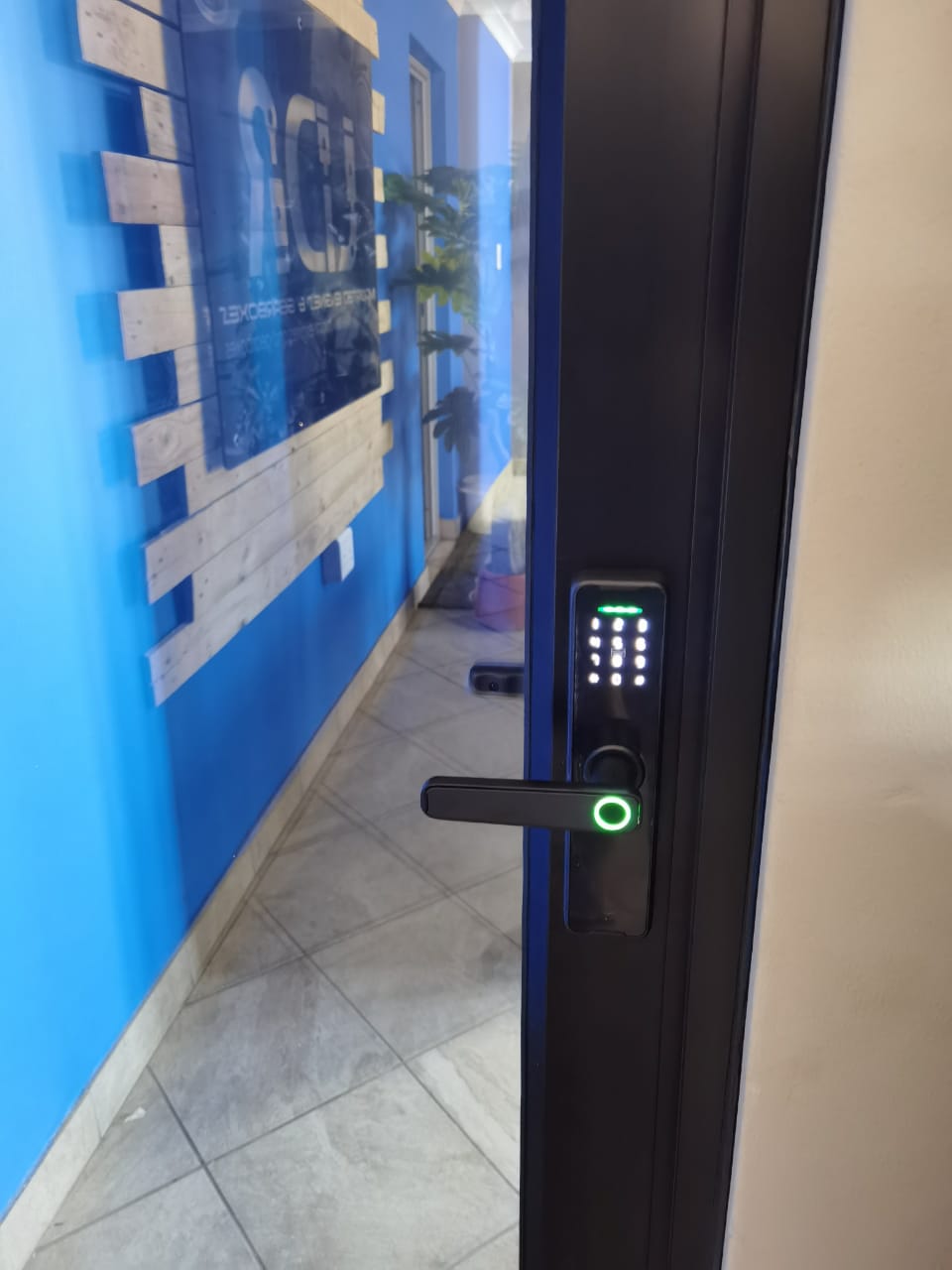 Aluminium-hinged-swing-door-smart-access-controlled-lock